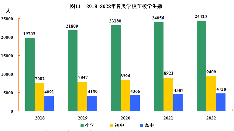 持续深化“一校多区”管理体制改革,全市普通中学19所,在校生14137人,其中,高中生4728人,初中生9409人;小学(完小)42所,在校生(含完小、教学点)24423人;幼儿园40所,在园幼儿9385人;特殊教育学校 1 所,在校生141人。高考应届本科上线 1040 人,本科上线率 79.0%,总分600分以上 107 人。