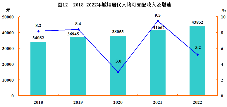 全年居民人均可支配收入34090元,比上年增长6.0%。按常住地分,城镇居民人均可支配收入43852元,增长5.2%;农村居民人均可支配收入24264元,增长7.1%。