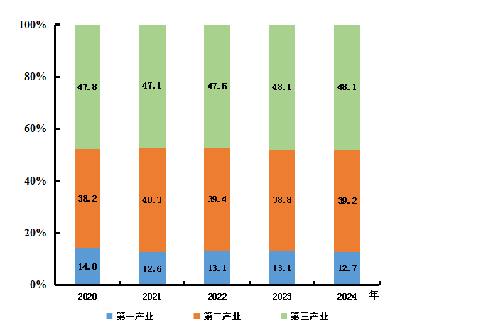 图2 2020-2024年三次产业增加值占GDP比重