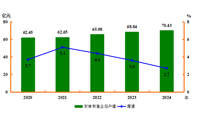 图4 2020-2024年农林牧渔业总产值及增速