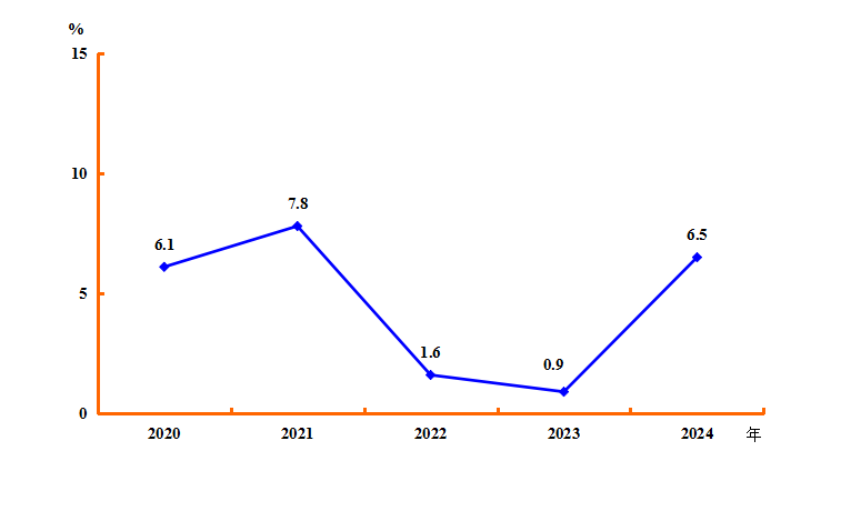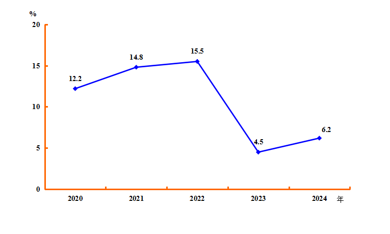 图5 2020-2024年规模以上工业增加值增速