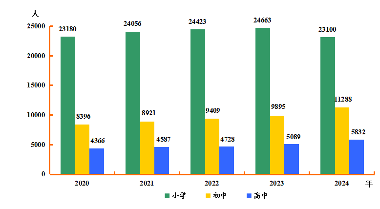 图8 2020-2024年各类学校在校学生数