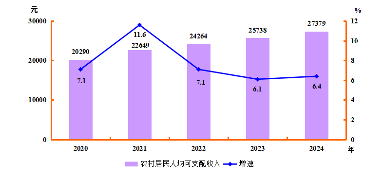 图10 2020-2024年农村居民人均可支配收入及增速