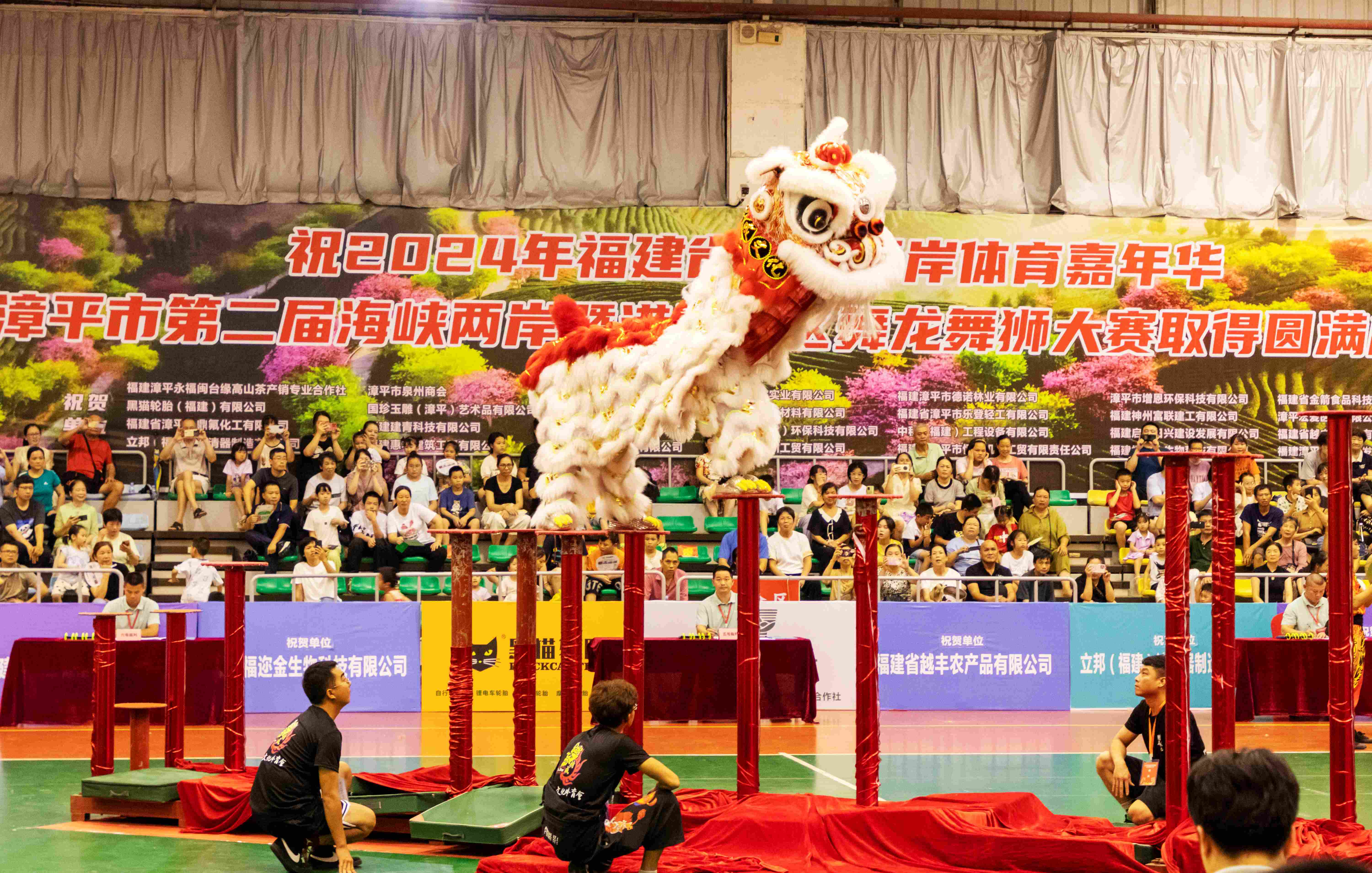 8月22日,备受瞩目的2024年福建省海峡两岸体育嘉年华·漳平市第二届海峡两岸暨港澳地区舞龙舞狮大赛在漳平市体育馆圆满落下帷幕。本次大赛作为第二届龙岩人才活动周系列活动之一,邀请来自海峡两岸暨港澳地区16支队伍260名舞龙舞狮人才同台交流竞技、共展风采,用精湛的技艺让在场观众领略了龙狮运动所绽放的传统文化魅力。