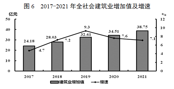 全年全社会建筑业增加值38.75亿元,增长7.1%。全市49家资质等级建筑业企业完成产值69.65亿元,增长20.2%;新签建筑合同额74.24亿元,增长17.7%。