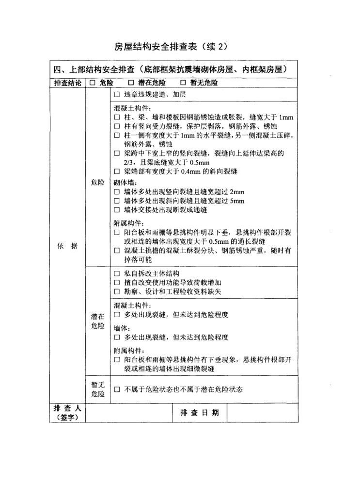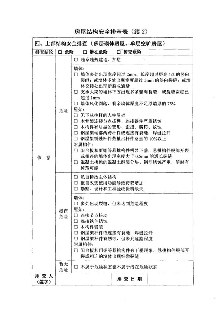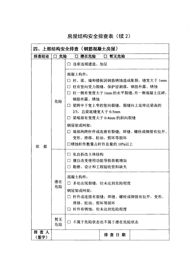 第四条 房屋结构安全排查应给出危险、潜在危险和暂无危险的结论。