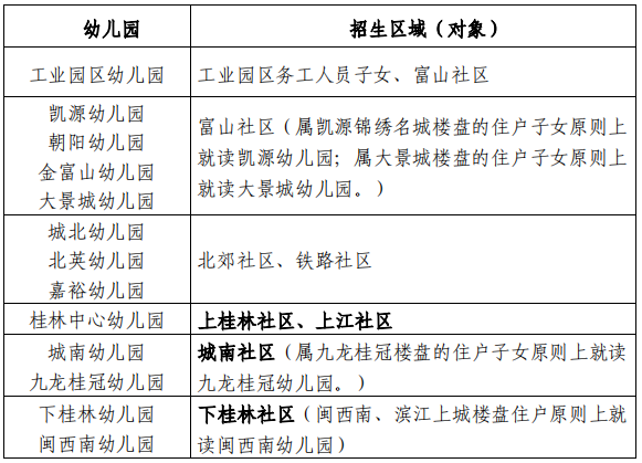 3.下桂林幼儿园的剩余学位招收户籍和居住地都在黄祠、瑞都、石板坑、山羊隔的幼儿,当学位不足时通过随机抽签的方式入学。